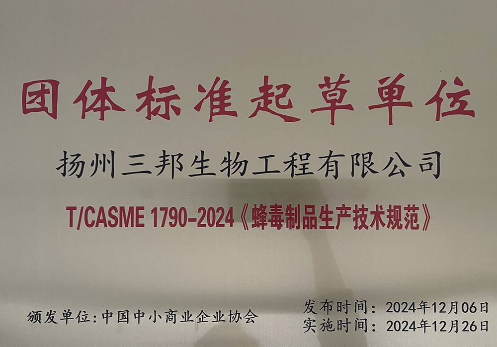• 2024-03-02中國養(yǎng)蜂學會吳杰理事長及臺灣宜蘭大學蜂學專家陳裕文教授等考察揚州三邦生物工程有限公司